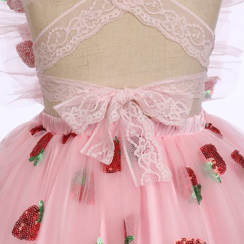 ODASDO Baby Girls Toddler Kids Strawberry Tutu Tulle Princess Romper Dress with Bowknot Headband Set 6