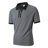 HOT ! Men's Color Block Polo Zip Polo Golf Shirt Short Sleeve Lapel Fashion Casual Outdoor Sport Daily Splice Summer Black Pink Red