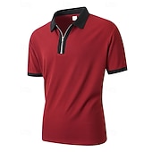 More information about Men's Color Block Polo Zip Polo Golf Shirt Short Sleeve Lapel Fashion Casual Outdoor Sport Daily Splice Summer Black Pink Red