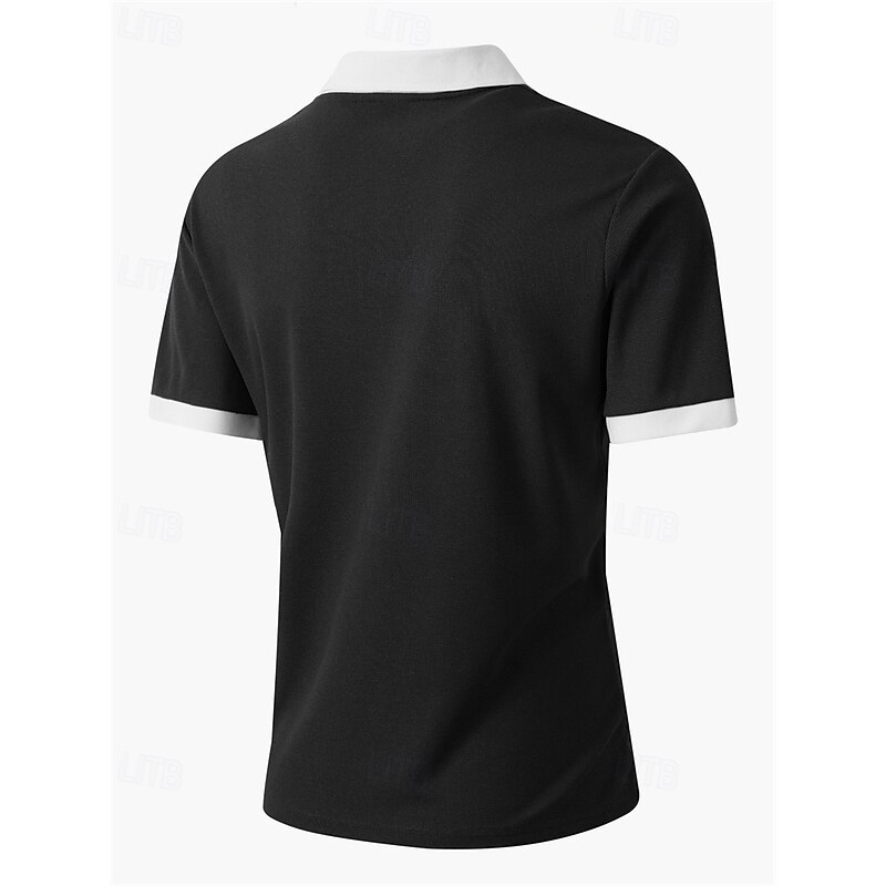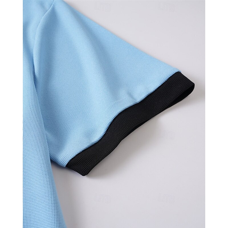 Men's Color Block Polo Zip Polo Golf Shirt Short Sleeve Lapel Fashion Casual Outdoor Sport Daily Splice Summer Black Pink Red 19