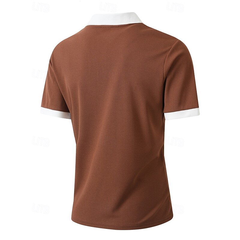 Highlights - Perfect for summer wear - Short sleeves for added comfort - Ideal for men - Casual and stylish design - Polo style top - Suitable for everyday wear - Eye-catching color block pattern - Lapel neckline adds a touch of sophistication