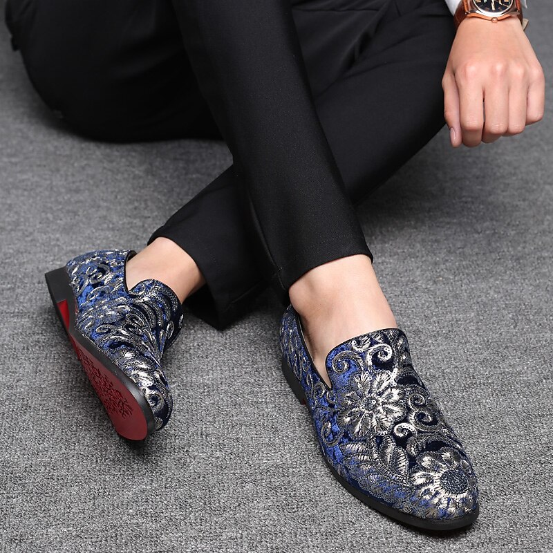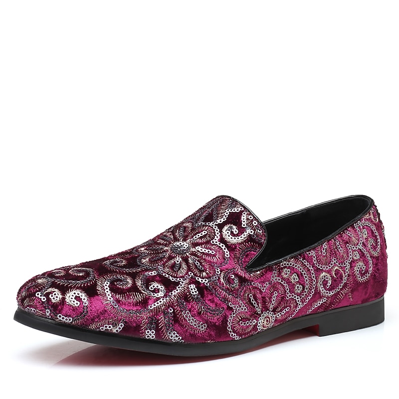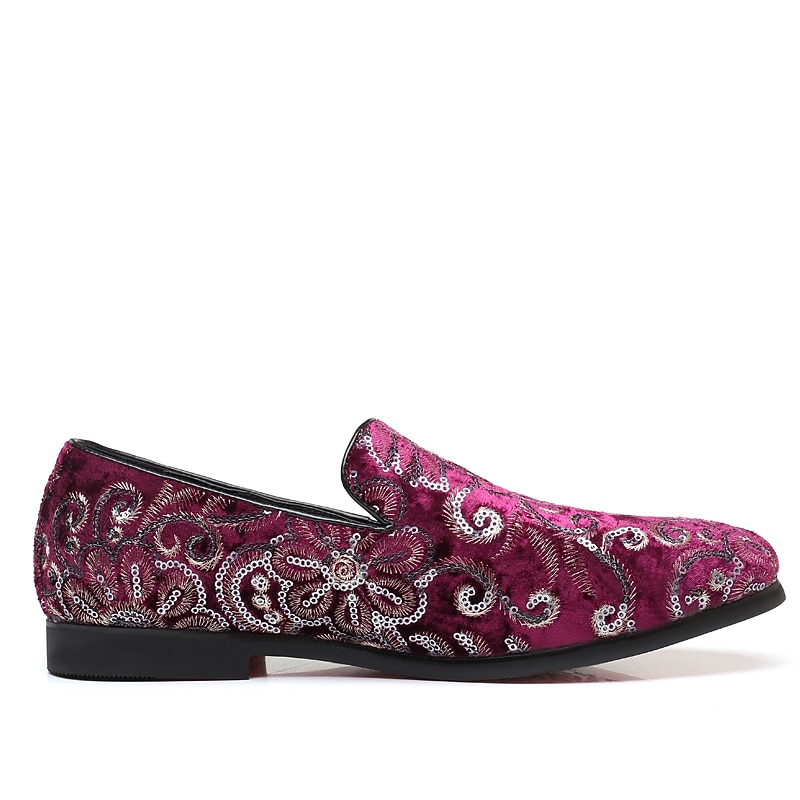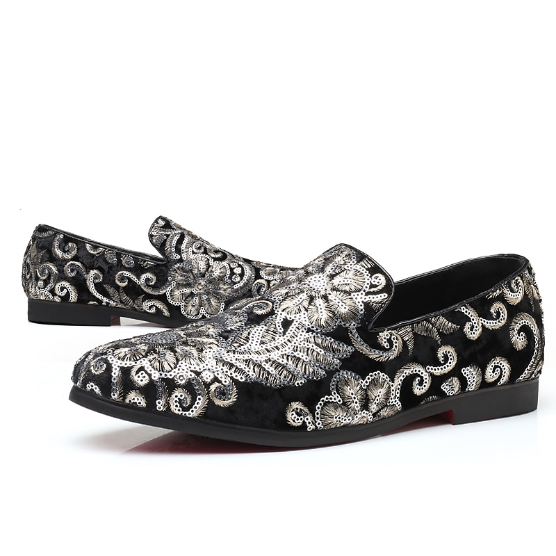 Men's Fabric Loafers with Sequins - Luxurious Floral Design, Vintage Style Party Shoes for Special Occasions 1