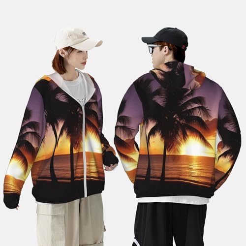 HOT ! Men's Sun Protection Shirts Sunset Beach Palm Tree Long Sleeve Sun Shirt for Fishing Running Hiking Swim