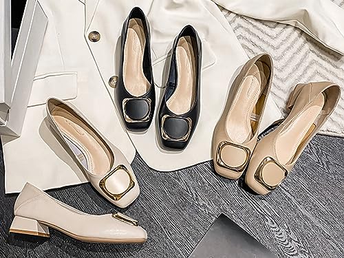 Women's Pumps Shoes Platform Low Heels Square Toe Chunky Heels Leather Solid Granny Walk Shoes Mid Heel Closed Toe Block Heels Soft-Soled Slip Ons Loafer Anti-slip Dress Shoes Casual Office Party 6