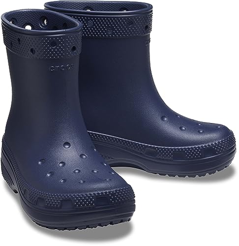 • ALL-DAY COMFORT: The Crocs Kids Classic rain boots are designed to provide all-day comfort for your little one's feet. The lightweight and flexible EVA Thermoplastic upper offers a cushioned and supportive fit, ensuring that their feet stay comfortable even during extended wear. The boots' EVA Thermoplastic lining and insole add an extra layer of comfort, providing a soft and cozy feel with every step they take.