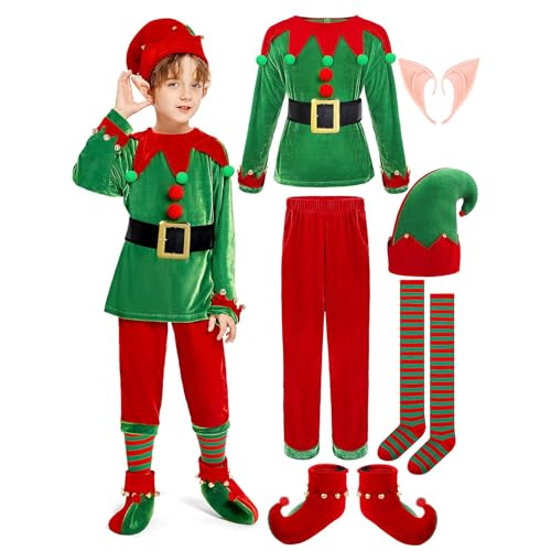 Kids Boys Christmas Performance Outfits Long Sleeve Top Pants Hat Socks Shoes Earrings Toddler Boys Festival 6pcs Set 1