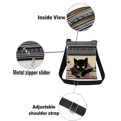 Cat Print Crossbody Bag Black Feline with Multi-Color Messenger Bag Adjustable Shoulder Strap Unique Gift for Art-Loving Sister​​ Travel Stylish Adult Purse Cat Lovers Gift 6