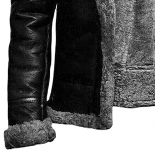 More information about Men's Classic Vintage Motorcycle Sherpa Leather Jacket Winter Warm Thicken Overcoat Fur Collar Fuzzy Leather Coat