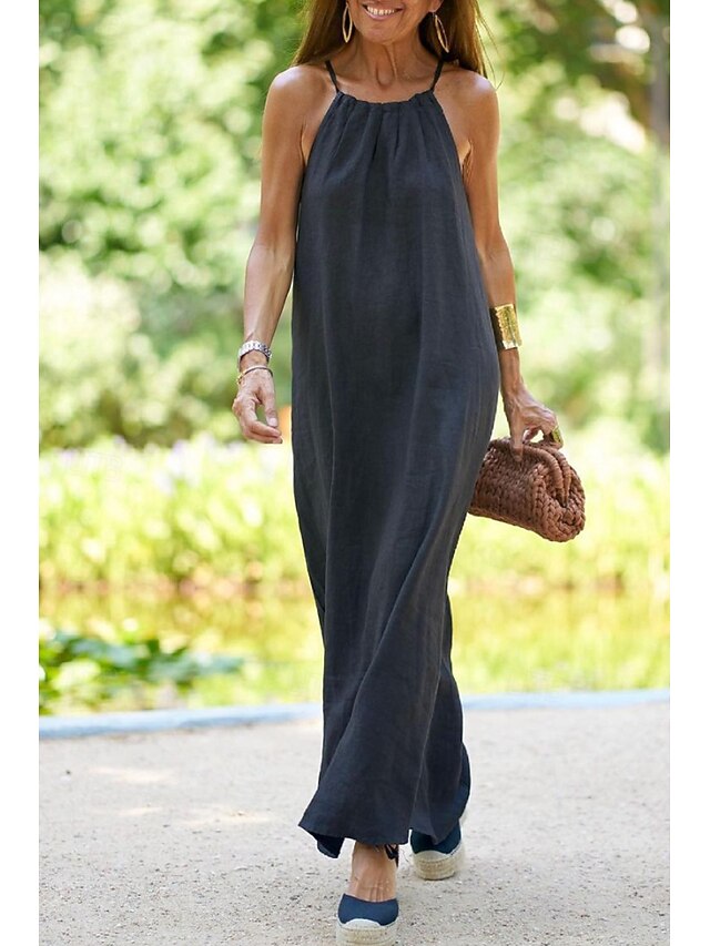 More information about Women's Midi Dress Linen-Inspired Dresses Cotton Linen Dress Slip Dress Fashion Basic Classic Outdoor Daily Holiday Regular Fit Plain Sleeveless Spaghetti Strap Black White Camel Summer
