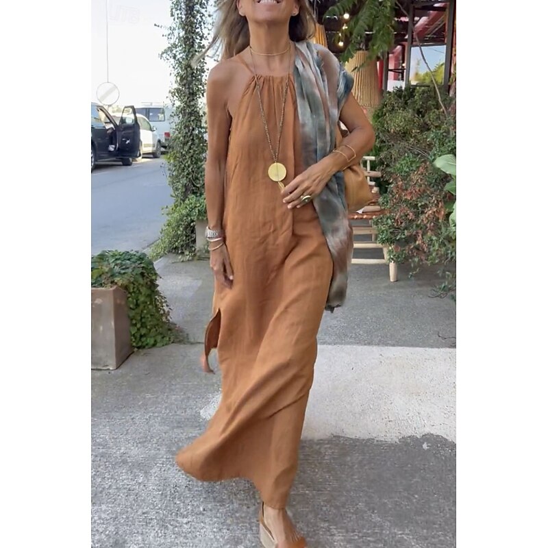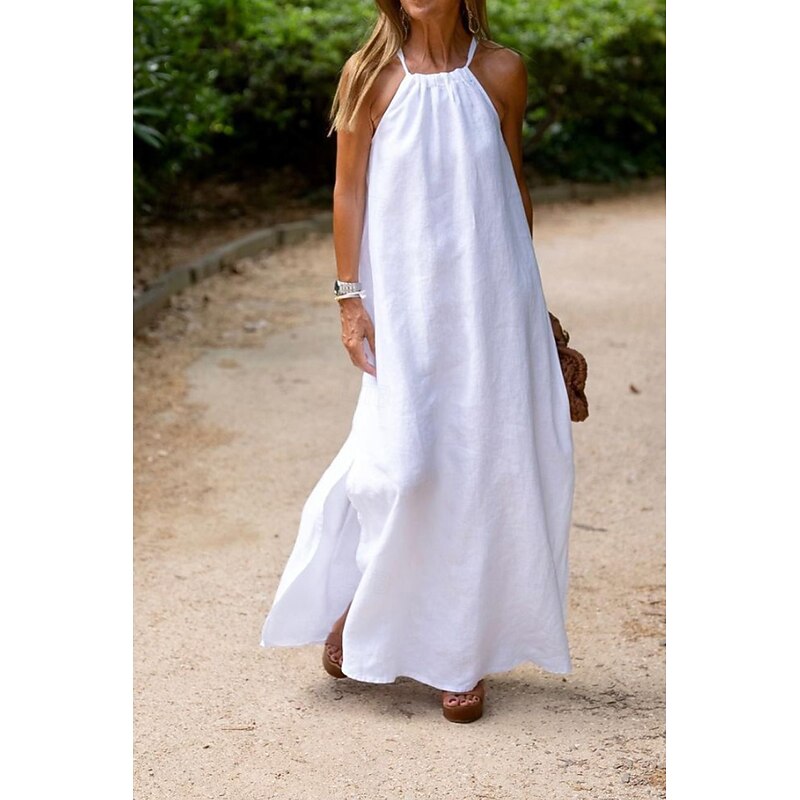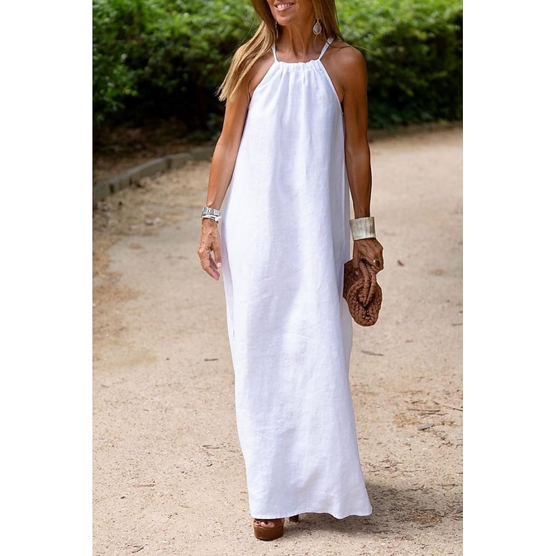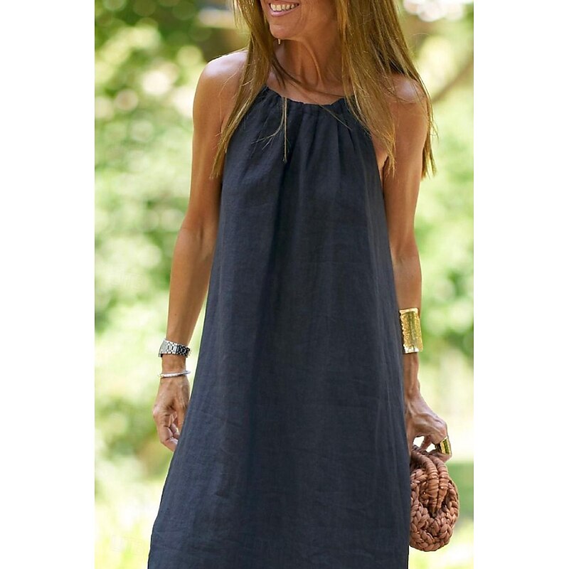 HOT ! Women's Midi Dress Linen-Inspired Dresses Cotton Linen Dress Slip Dress Fashion Basic Classic Outdoor Daily Holiday Regular Fit Plain Sleeveless Spaghetti Strap Black White Camel Summer