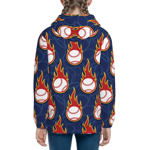 Baseball Ball and Flames Kids Pullover Hoodies Boys Zip Up Sweatshirts Girls Athletic Clothes with Pocket 5