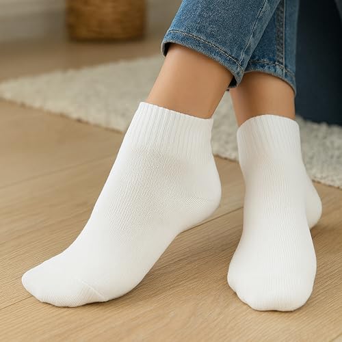 Women’s Cotton Ankle Socks 6 Pairs Size 6-10 All-White Soft Breathable Durable Everyday Socks for Sports Work Fitness Casual Wear 5