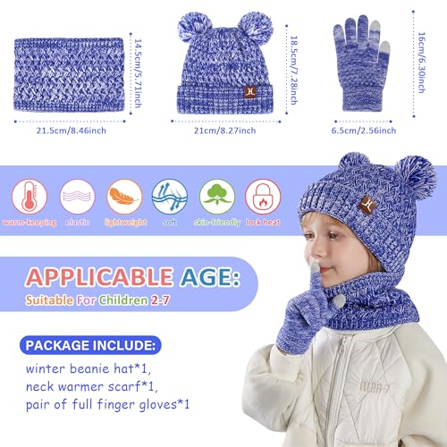 Toddler Kids Winter Hats Scarf Touchscreen Gloves Set Knit Pom Beanie Neck Warmer for Girls Boys 2-7 Year Old Gifts 3