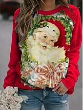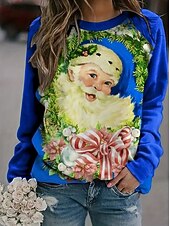 More information about Women's Pullover Graphic Santa Claus Christmas Casual Long Sleeve Crew Neck Regular Tops Casual Holiday Print Pink Red Blue Spring Fall Winter
