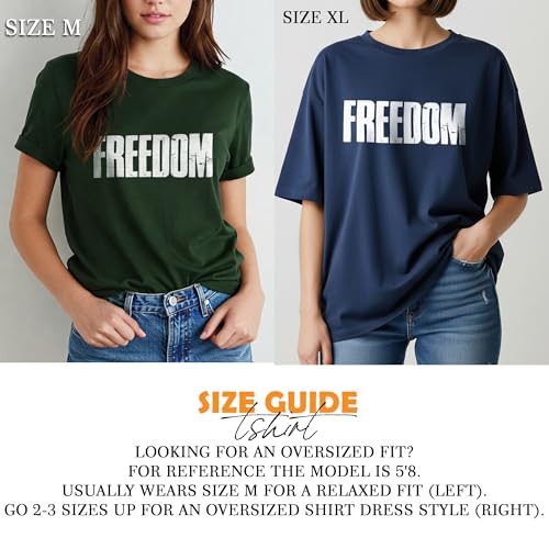 • Two-Sided Patriotic Design: This unique T-shirt features a powerful two-sided design. The front has a bold, minimalist "FREEDOM" quote, while the back proudly displays a distressed, vertical vintage USA flag.