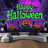 More information about Halloween Decorations Pumpkin Blacklight Tapestry UV Reactive Glow in the Dark Forest Trippy Mountain Misty Graveyard Ghost Hanging Tapestry Wall Art Mural for Living Room Bedroom