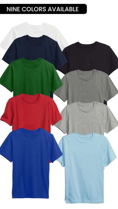 Galaxy by Harvic 3 Pack Boys Short Sleeve Crewneck Solid T-Shirt, Soft Cotton Blend with Ribbed Crew Neckline Tee 5