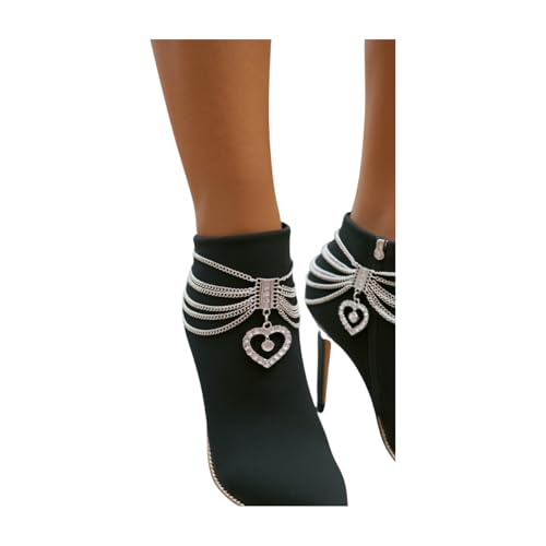 Women Silver Metal Boot Chain Bracelet Shoe Anklet Fashion Jewelry Accessory Love Heart 2 Pcs Pair 5