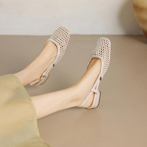 Cozivwaiy Women Mesh Slingback Flat Low Heel Square Toe Adjustable Buckle Comfortable Dress Shoes 7