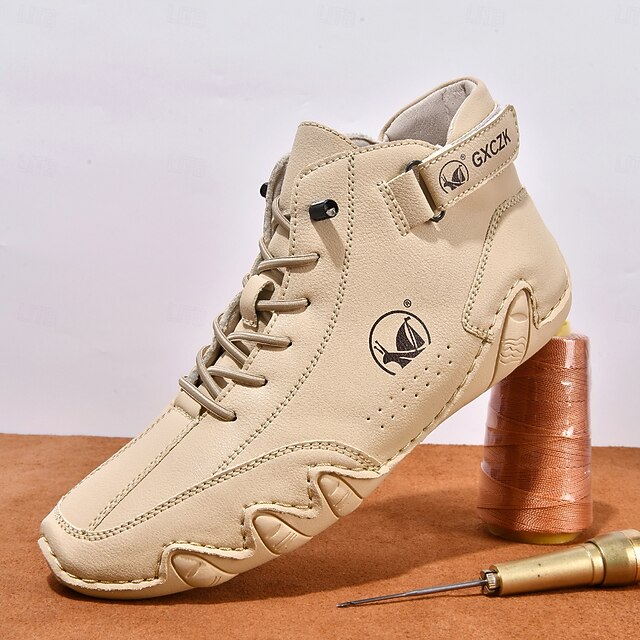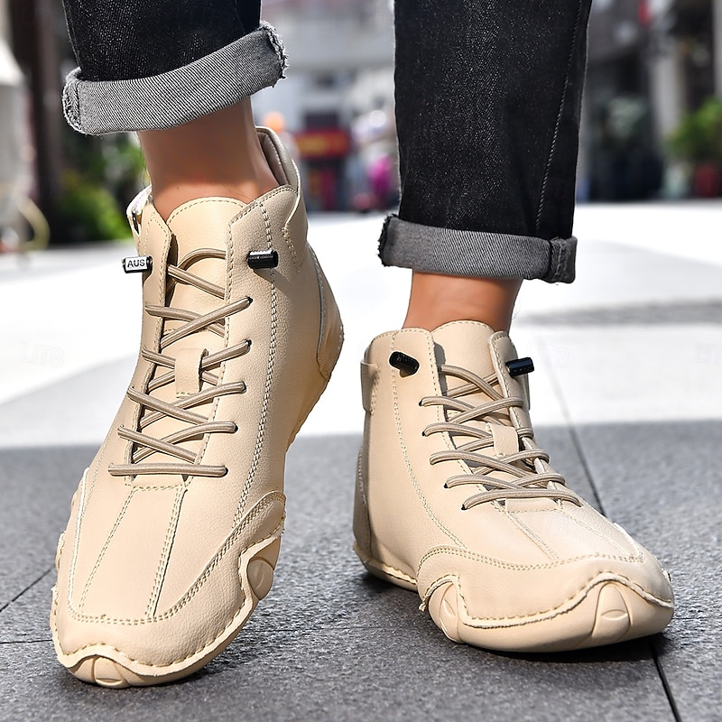 Men's Beige High-Top Tactical Combat Boots with Lace-Up Design – Lightweight Military Style Outdoor Footwear for Hiking, Work and Daily Wear 34