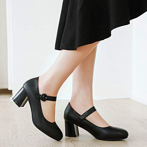 LUXMAX Womens Mid Block Heel Mary Janes Ankle Strapped Pumps Uniform Dress Shoes 6