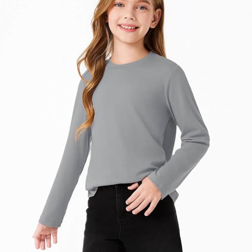 Kids Girls Fall Long Sleeve Shirts Solid Color Round Neck Casual Basic Tops Autumn Trendy Soft Pullover Tees Clothes 5