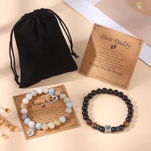 HOT ! MOZAKA 2Pcs New Mom & Dad Gifts Healing Natural Stone Bracelets for Women Men, First Time Mom & Dad Essentials, Mother's Day Pregnancy Gifts for Expectant Moms