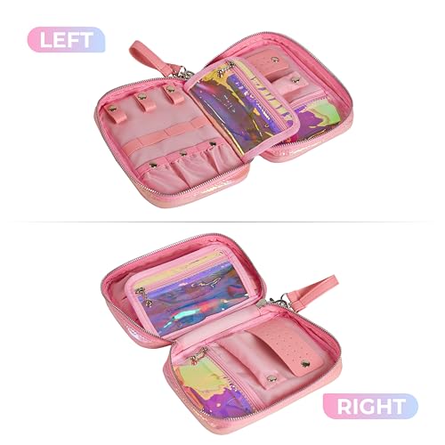 HOT ! Travel Jewelry Organizer Case with Zipper and Mirrored Charm, Small Portable Jewelry Storage Bag for Rings, Necklaces, Earrings, Travel Pouch, Travel Gift for Her, Holographic Pink