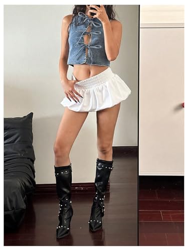 • Features: Knot front, round neck, solid, cropped denim vests for women
