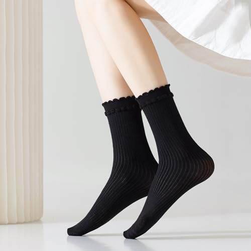 Mcool Mary Women's Crew Socks, Breathable Thin Cotton Cute Scalloped Edges Frilly Ankle Socks for Women 6 Pairs 7