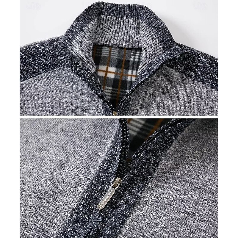 More information about Men's Cardigan Sweater Dress Sweater Fleece Sweater Ribbed Knit Cropped Knitted Color Block Stand Collar Warm Ups Modern Contemporary Daily Wear Going out Clothing Apparel Winter Spring & Fall Blue