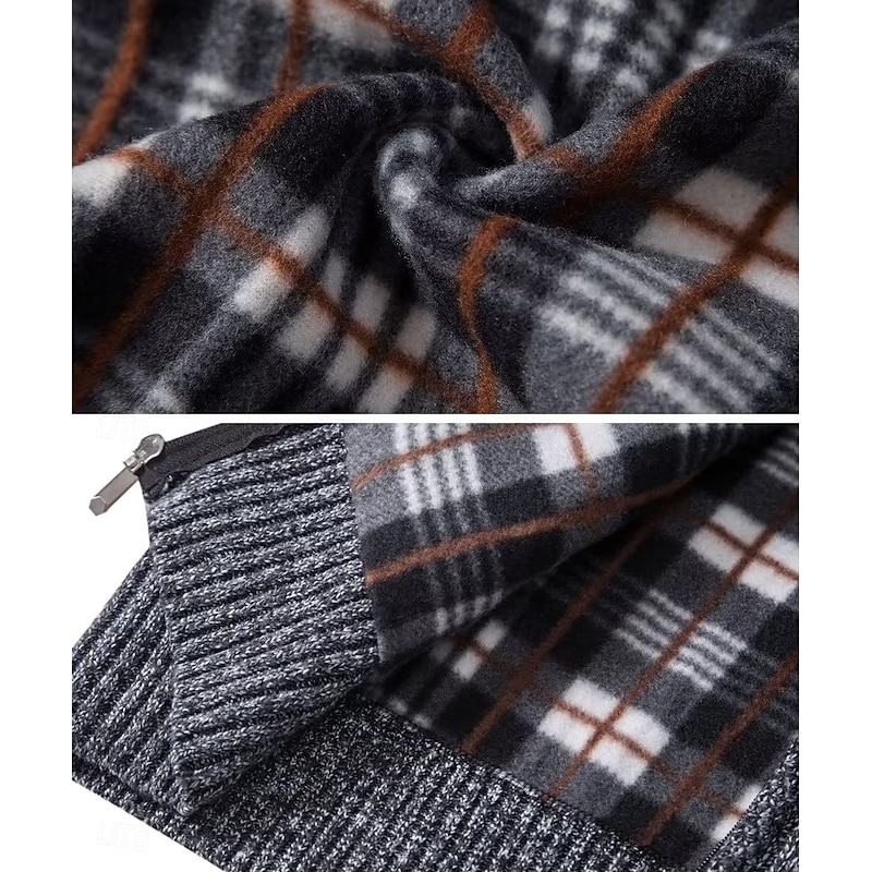 Highlights [Fabric] : Expertly crafted from a luxurious blend of acrylic and fleece, this men's cardigan sweater is designed to offer unparalleled warmth and comfort. The ribbed knit texture adds depth and a soft feel, ensuring it meets the demands of colder seasons like winter, spring, and fall. [Fit] : The sweater boasts a cropped length and classic regular fit, providing a modern yet timeless appeal. The ribbed cuffs and hem add to the sweater's durability, ensuring it maintains its tailored shape while offering a comfortable, stretchy fit. [Design Highlights] : This cardigan features a striking color block pattern in shades of blue, dark gray, light gray, and khaki, enhanced by a stand collar for a touch of contemporary style. The full-zip closure adds practicality, while the contrasting sections on the shoulders and cuffs give it a refined, modern edge. [Occasions] : Versatile and stylish, this cardigan is perfect for daily wear, going out, festivals, and various events throughout the seasons. Pair it with a shirt and tie for a sophisticated look, or dress it down with a t-shirt for casual outings. [Size Range] : Available in a comprehensive size range from S to XXL, this cardigan caters to a variety of body types, ensuring a perfect fit for everyone.