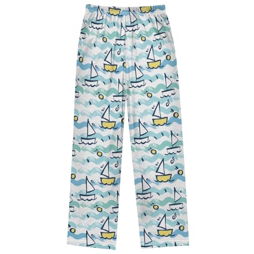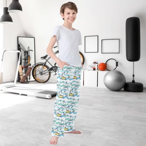 Boy's Pants Cartoon Yachts Seagulls Blue Sea Jogger Pants Elastic Waist Long Bottoms Trousers with Pocket 6-14 Years 6