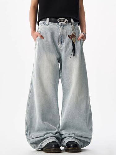 More information about LONGBIDA Mens Baggy Jeans Barrel Wide Leg Jeans Y2K Hip Hop Loose Fit Denim Pants with Elastic Waist