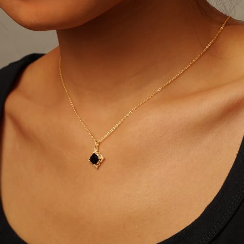 HOT ! Dainty 14K Gold Plated Black Onyx Necklace for Women 925 Sterling Silver Square Gemstone Cubic Zirconia Pendant Choker Necklace Jewelry Christmas Wedding Gift