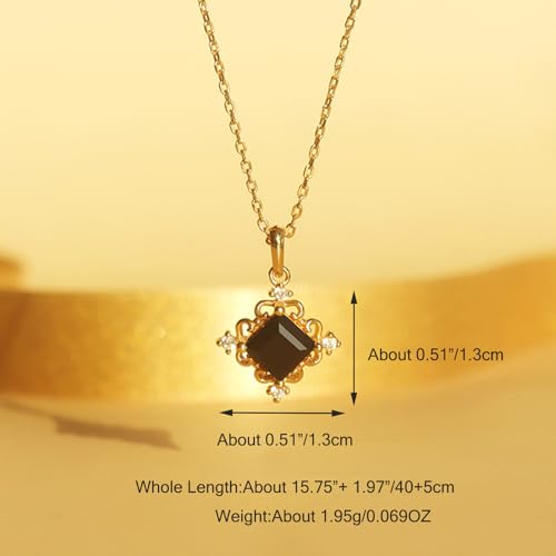 • Adjustable Size: This necklace length approx: 15.75 inch + extend 1.97 inch(40+5cm), you can adjust it freely. Whole pendant about 1.3*1.3cm, black onyx about 0.6*0.6cm, weight about 1.95g. Suitable for women, perfect for daily wear and dating