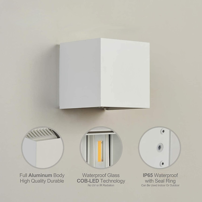 LED Outdoor/Indoor Wall Light IP65 12W 6000K White 3000K Warm Adjustable Beam Angle Waterproof 1000lm Sconce Fixture for Home Garden 11