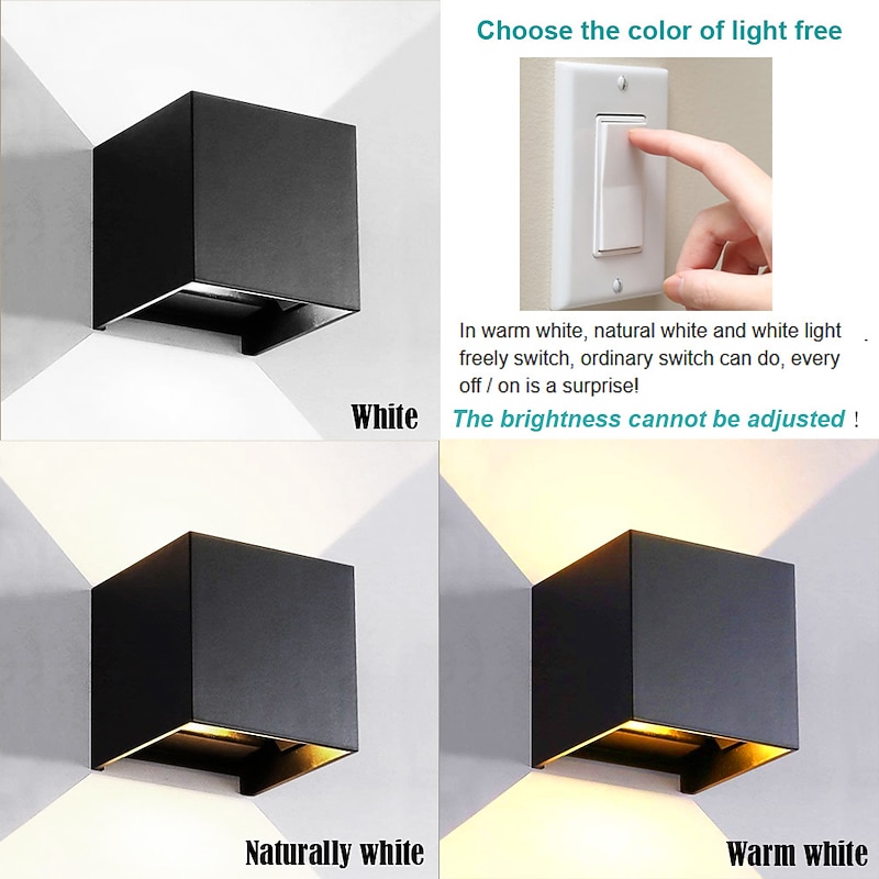 LED Outdoor/Indoor Wall Light IP65 12W 6000K White 3000K Warm Adjustable Beam Angle Waterproof 1000lm Sconce Fixture for Home Garden 4