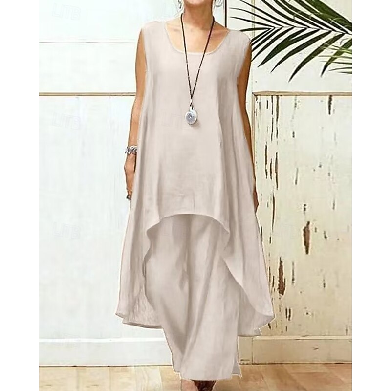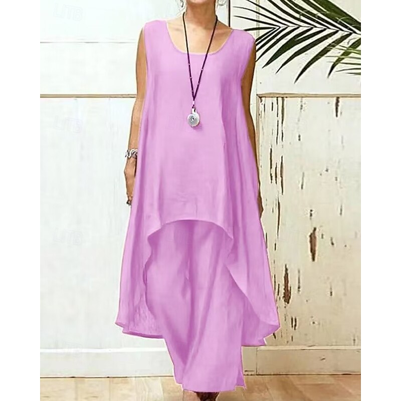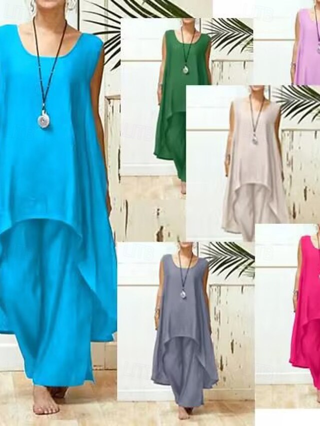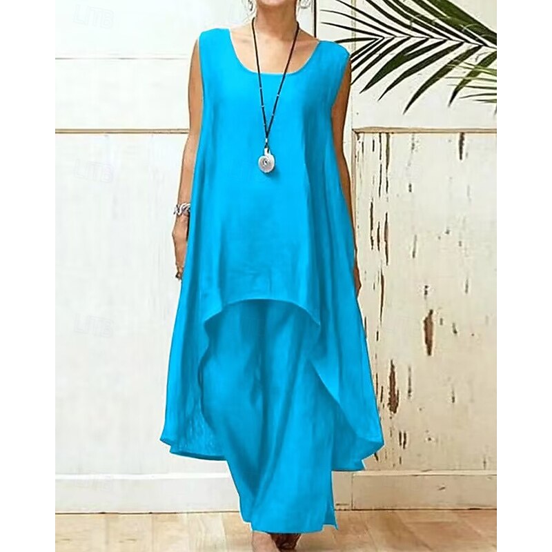 More information about Women's Fashion Blouse Pants Sets Sleeveless Crew Neck Solid Color Vacation Casual Daily Black Sky Blue Purple Summer Regular Fit