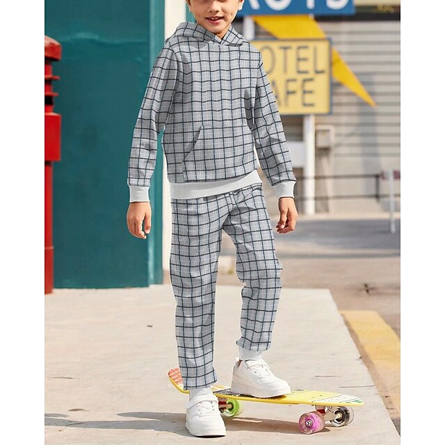 More information about Boys' 3D Plaid Hoodie & Sweatpants Set Sports Suit Tracksuits Long Sleeve Spring Fall Daily Basic Casual Kids 4-12 Years Hooded Outdoor Vacation Sports Tailored Fit