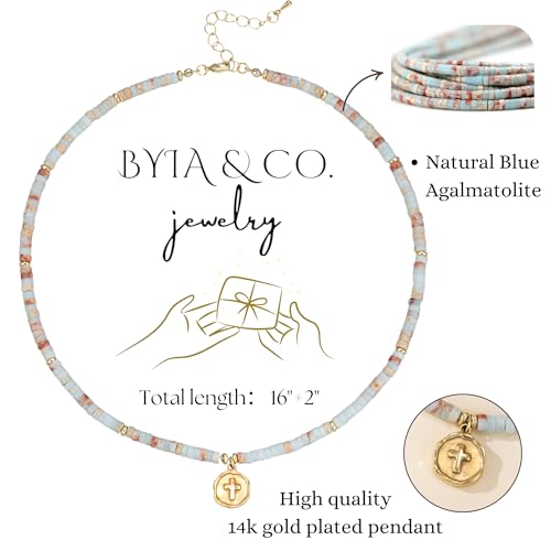 Natural Gemstone Necklaces for Women Agalmatolite Choker Handmade Cross Necklace Pagodite Boho Beaded Jewelry Faith Gifts 3