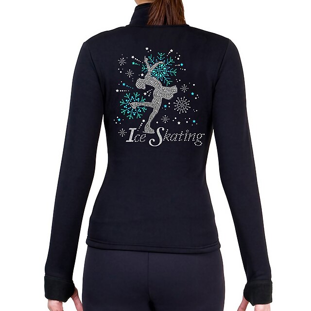 More information about Figure Skating Fleece Jacket Women's Girls' Ice Skating Jacket Black Green Black Sky Blue Thumbhole Fleece Spandex Stretchy Training Practice Competition Skating Wear Thermal Warm Handmade Crystal
