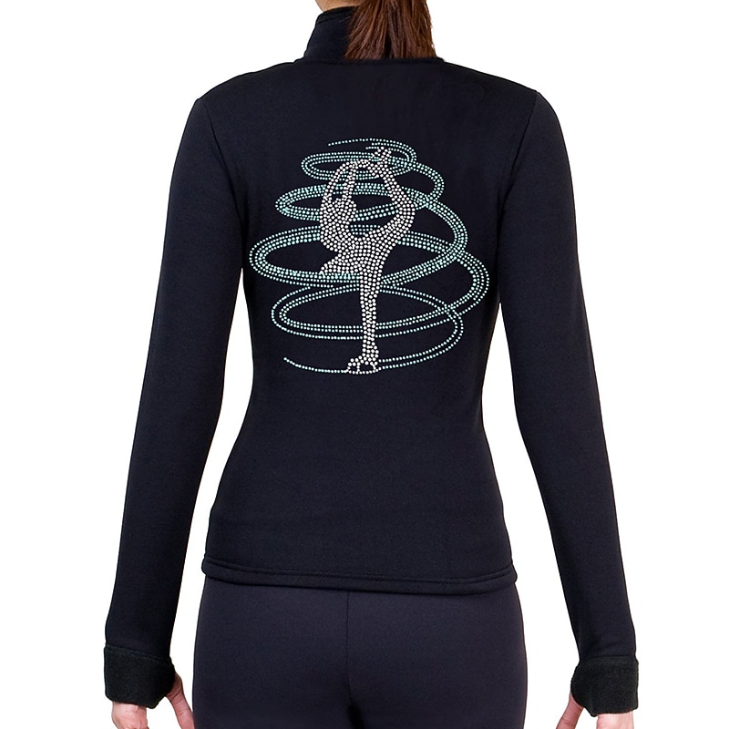 HOT ! Figure Skating Fleece Jacket Women's Girls' Ice Skating Jacket Black Green Black Sky Blue Thumbhole Fleece Spandex Stretchy Training Practice Competition Skating Wear Thermal Warm Handmade Crystal