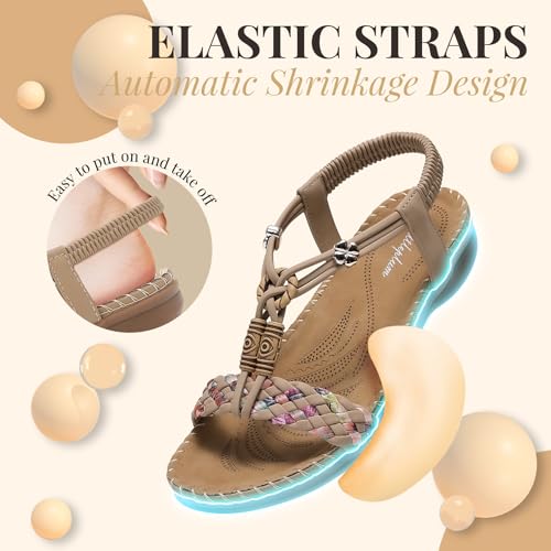 Littleplum Women Sandals Arch Support Handmade Bohemian Braided Flat Sandals Comfort Walking Beach Ankle Elastic Summer Shoes 6
