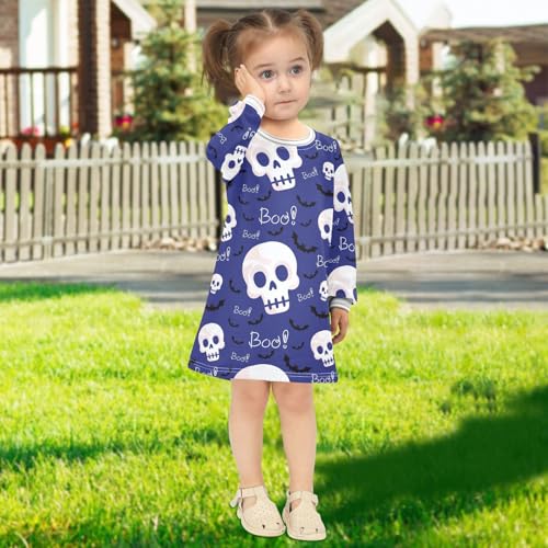 Skull on Purple Girls Dresses Long Sleeve Sweatshirt Dress for Girls Winter Toddler Casual A Line Dresses Size 2-8T 4