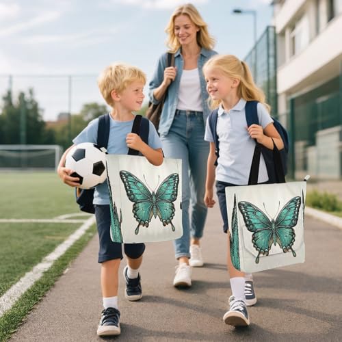 HOT ! Green Butterfly Book Tote Bag,Large Capacity Handbag with Zipper Perfect for School,Travel,Shopping