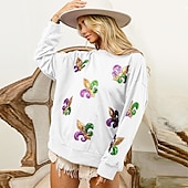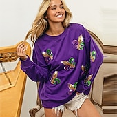 More information about Women's Mardi Gras Shirt Blouse Women's Black White Purple Graphic Sequins Party Casual Active Sportswear Round Neck Regular Fit Carnival Theme