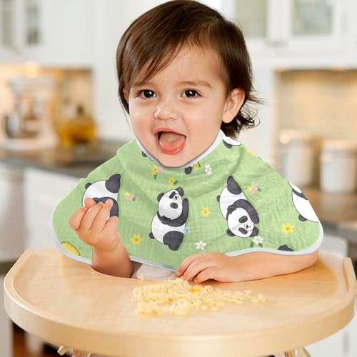 J JOYSAY Panda Flowers Hearts Green Baby Burp Cloths for Boys Girls Large 22''x11'' Cotton 4 Layer Burping Cloths for Girl Babies one sizex2 5