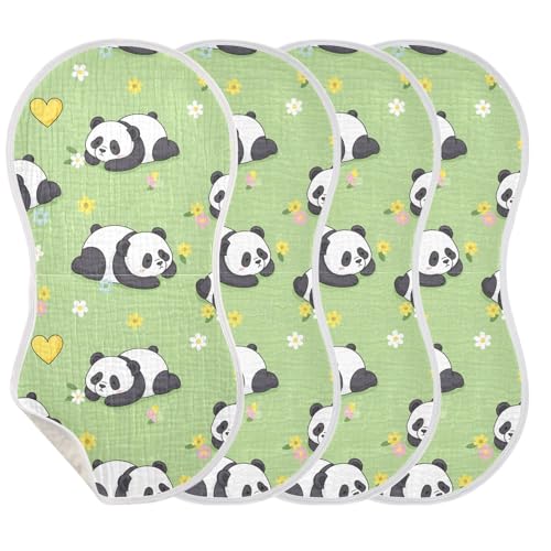 J JOYSAY Panda Flowers Hearts Green Baby Burp Cloths for Boys Girls Large 22''x11'' Cotton 4 Layer Burping Cloths for Girl Babies one sizex2 4
