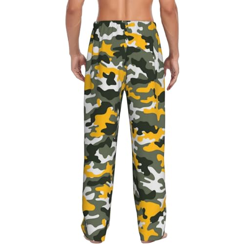 HOT ! Yellow Green Camouflage Mens Pj Pants,Soft Men Lounge Pants,Mens Pajama Pants Bottoms,Sleep Pants For Men